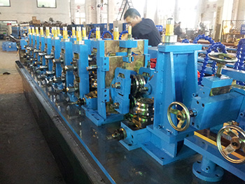 焊管機(jī)組是以帶鋼為原料,經(jīng)開卷、成型、高頻焊接、消除焊瘤、定經(jīng)、矯直、切斷等一系列制管工序制造出圓鋼管或各種一行鋼管的成套設(shè)備。